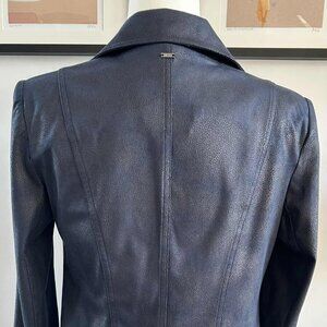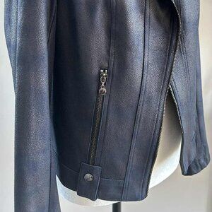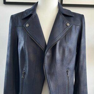 Vex Collection Navy Faux-Leather Moto Jacket with Hook-Eye Closure – EU 38