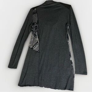 Vex Collection Patchwork Artsy Abstract Floral Cowl Neck Grey Dress Soft Sz 38