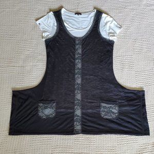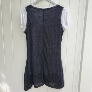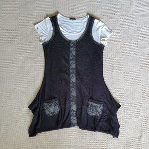 White short sleeved tee, black crinkled effect look on tunic with black/white accents, trim & pockets