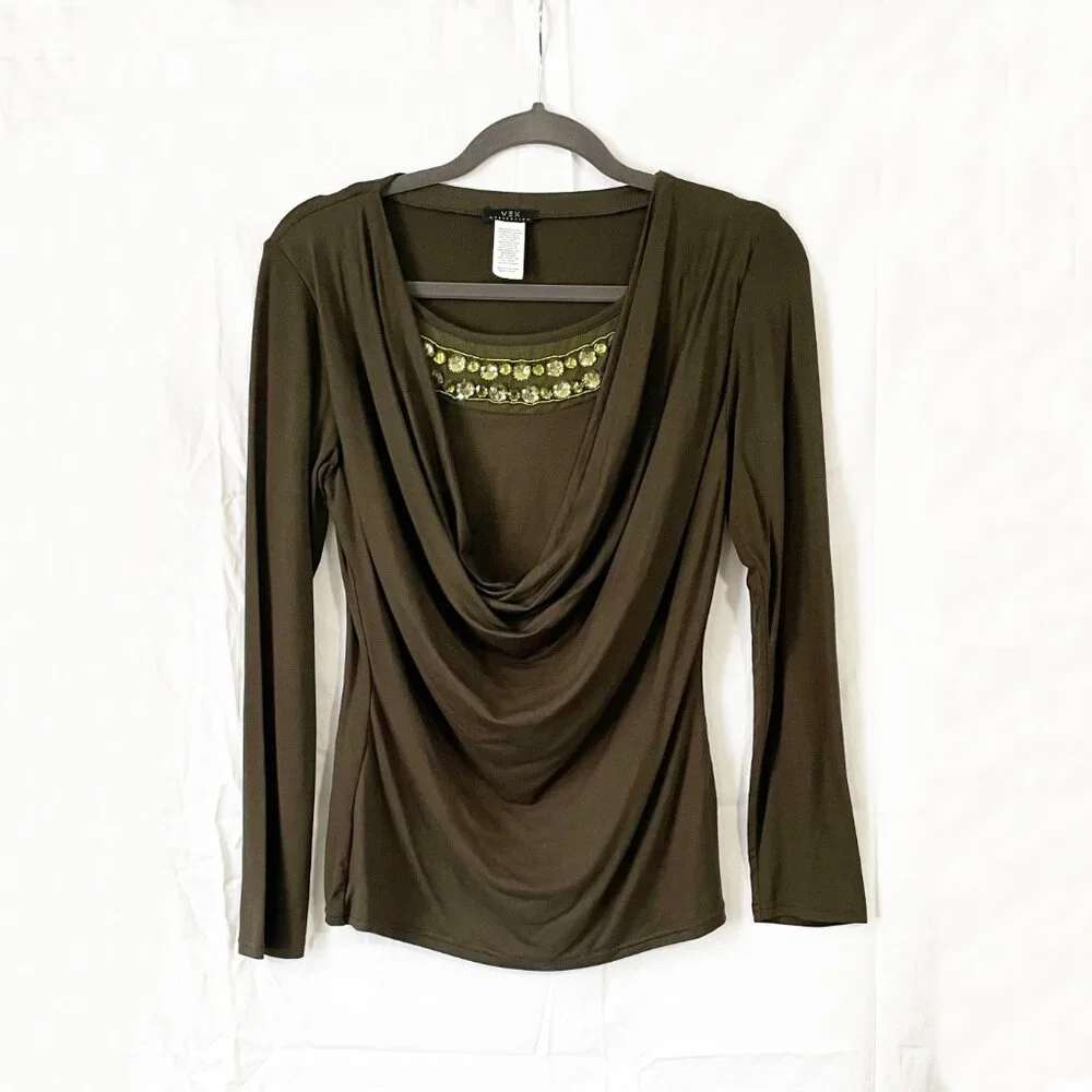 • Layered front with draped neck