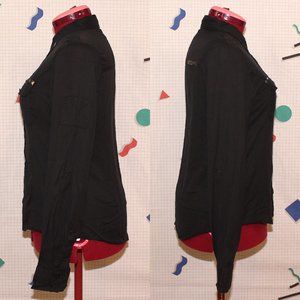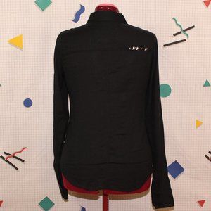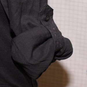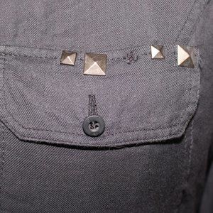 Black shirt from Vexy. Features two breast pockets, pyramid studs, and straps inside sleeves to hold rolled up cuffs. One stud was already missing when I originally bought it. Never worn, washed once. Made in China. 100% cotton. Measurements lying flat are: 19"(38") bust, 18"(36") waist, and 20"(40")hips. Tags: punk, goth, y2k, alternative