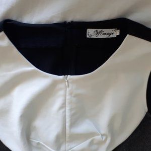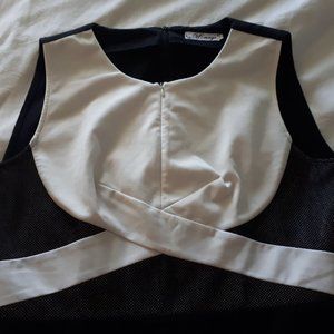 Very nice, excellent condition, sporty white and black design, concealed front zip to the cross pattern, concealed zip back, size US 20, soft fabric with stretch