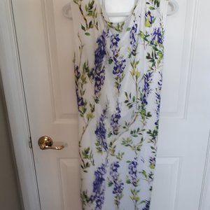 Lovely soft satiny lined Bodycon dress with stretch, purple green on white, little longer then knee based on height
