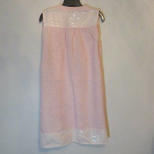 Via SIGNORIA 100% Linen Shift Pink Dress with Cotton Lace Made in Italy Small