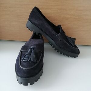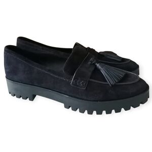Via Spiga Black Suede Tassel Loafers with Lugged Sole Woman's 8.5