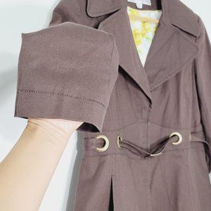 Via Spiga Brown Cotton Blend A-Line Coat Jacket Lined Belted Stretch Pockets S