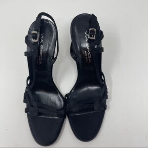 Via Spiga Sandals Strappy Satin Black Women's Size 8 Heeled