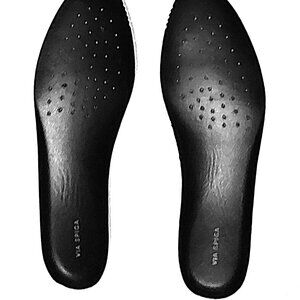 Stretch-suede-leather sneaker with an engineered lightweight sport-bottom and molded footbed, leather lining, cushioned insole, and rubber outsole. The colour is grey-beige (taupe). They’re too small for me, unfortunately.