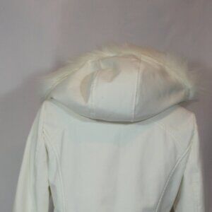Via Spiga white hooded fur zip ladies light quilted pattern coat size small