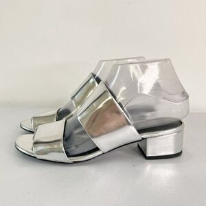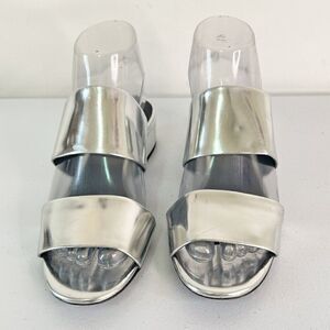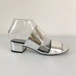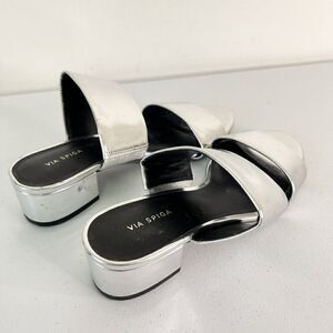 Via Spiga Galene Silver Double Strap Block Heel Slide Sandals