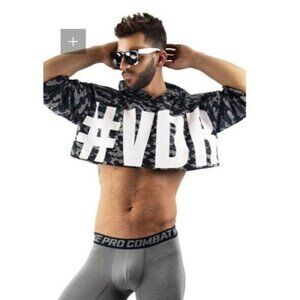 * #VDR slogan printed in oversized white font across the chest with faint camo shapes creating a shadowy effect.