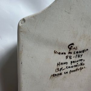 Viana do Castelo Portugal Pottery Wall Pocket Signed Hand Painted Floral Blue