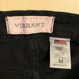 A black short jeans with a frayed hem and distressing throughout details. Two pockets at front and two pockets at back. Perfect for summer.