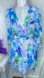 Pretty vibrant blue and green floral dress with flounce sleeves and cutout sides and lower back.