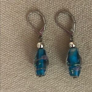 Vibrant Blue & Silver Earrings with Lever-Backs bought in Venice