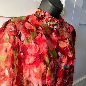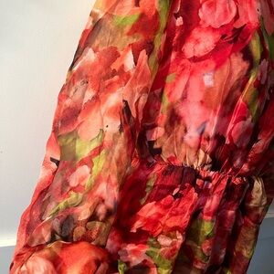 Bright floral dress with long sleeves. Features a mix of red, pink, and green colors. Made in Italy Marked size XL