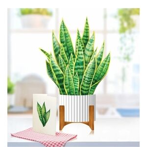 Send celebration wishes with this vibrant green snake plant pop-up card. Perfect for any occasion.