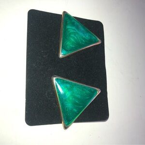 Vibrant Green and Silver Triangle Earrings