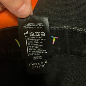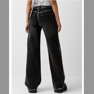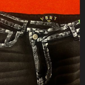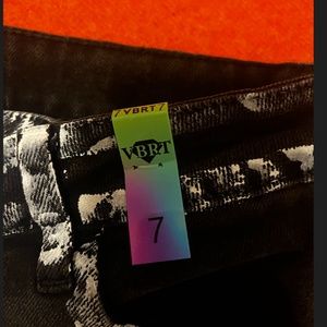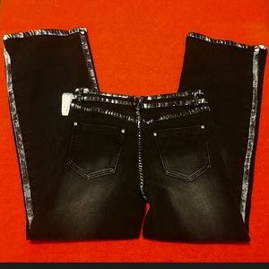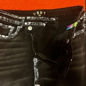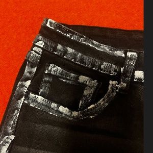 Vibrant M.I.U black with painted white bands and crossover waist jeans NWT