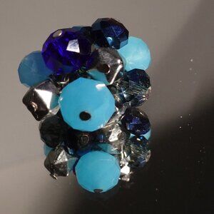 Design: The ring is adorned with a cluster of sparkling beads in shades of blue and silver, set on a silver-tone adjustable band. The beads catch the light beautifully, adding a touch of glamour to any ensemble.