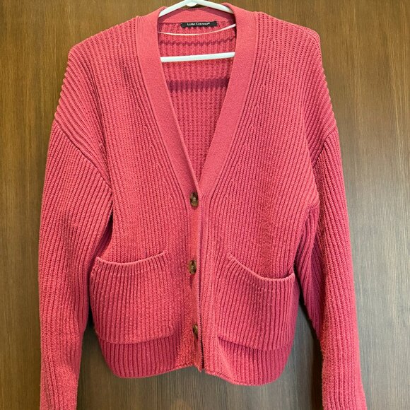 Both the pink and the light green/beige Cerano cardigans are both Size 8.