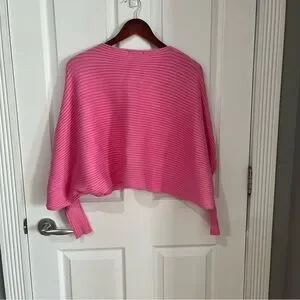 Vibrant pink ribbed sweater with dolman sleeves Ideal for stylish layering.