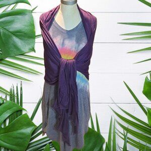 This vibrant purple scarf wrap is crafted from a silky, lightweight material that drapes elegantly. Its rich color adds a bold touch to any ensemble, making it a versatile accessory for various occasions. Perfect for enhancing both casual and formal looks.