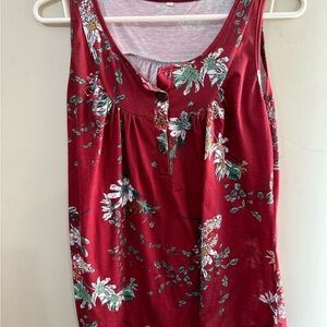Vibrant Red Floral Tank Top with Ruched Neckline