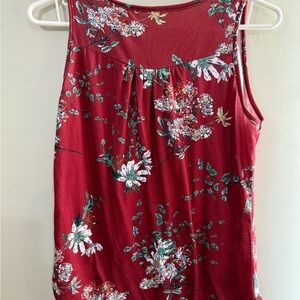 This eye-catching tank top showcases a rich red hue adorned with a lively floral pattern, offering a perfect blend of style and comfort. The ruched neckline adds a touch of elegance, while the soft, stretchy fabric ensures a flattering fit. Ideal for warm weather, this top is a must-have for a chic and summery look.