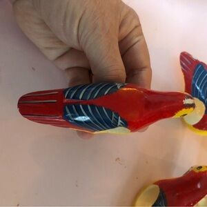 Vibrant Red and Blue Bird wood parrot napkin rings. Preloved