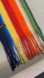 This scarf features a bold, multi-color stripe pattern in deep, rich shades including navy blue, bright yellow, sunset orange, deep red, and earthy olive green,adding a vibrant pop of color to any winter or fall ensemble.