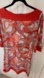 Chic dress featuring a striking red color with gray accents. Perfect for any occasion.