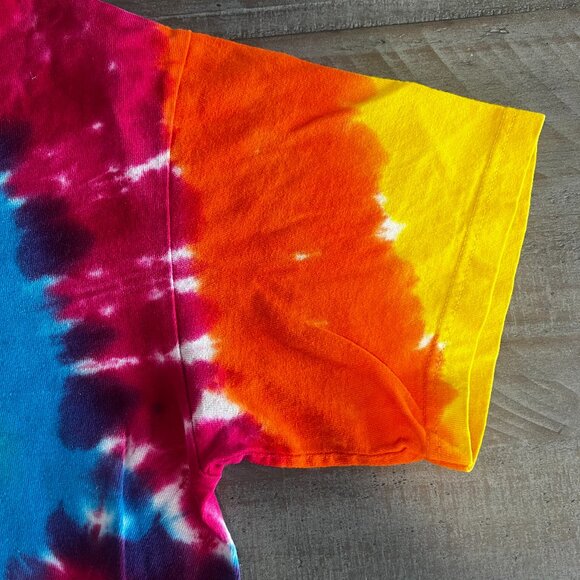 Rainbow spiral tie dye tee, bought that way, not DIY. Good quality worn once, the tag says size youth M but it fits women's small.