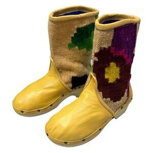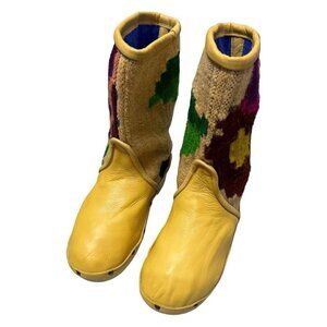 Add a splash of color to your wardrobe with these vibrant moccasins. Featuring a striking yellow base with multicolor floral accents, these shoes are perfect for making a statement.