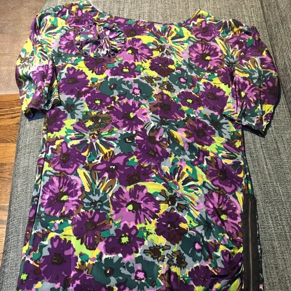 Vibrant silk floral minidress/tunic with side zipper by BCBGMAXAZRIA (Small)