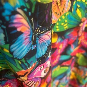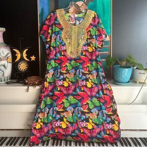 Vibrant Multicolor Maxi Dress with Butterflies and Gold Accents One Size