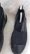 a pair of black slip-on shoes, likely made of leather or a similar material, with a textured elastic band across the vamp.