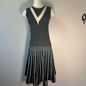 Elegant black and white striped dress perfect for any occasion. Features a flattering fit and stylish design.