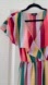 Look stunning in this show stopper of a dress. Note: it is missing the fabric belt shown in stock pics. Can pair it with any other color (I’ve paired it with a tan belt in the listing pics for style reference; belt not included). Please note there is 1 flaw (see last 2 pics); the previous owner pinned the slit closed, close to the top, so there are some in holes an a small snag. Excellent condition otherwise (no other rips, stains or signs of wear). Price reflects condition. White Stella clutch also available in my closet. Features: