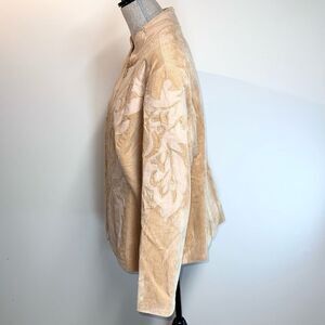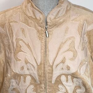 Victor Costa Womens Sz 1X Embroidered Hippy Boho tan Jacket Top corduroy.