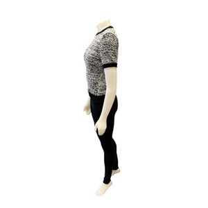 Black and white knit T-Shirt black trim around neck arm cuffs and base excellent stretch