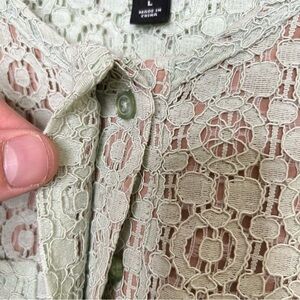 Style: Long Sleeve Knee Length Half Button Down Shirt Dress with Lace Overlay