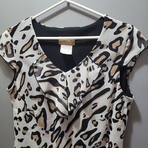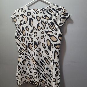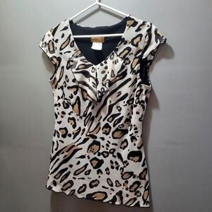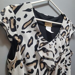 Victoria Collection Leopard Print Short Sleeve Ruffled Top S