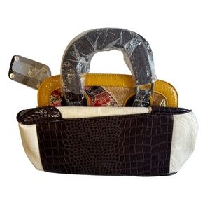 Tags: victoria collection bag, patchwork handbag, croc embossed purse, brocade fabric bag, multicolor satchel, structured handbag, vintage inspired bag, statement purse, top handle bag, new with tags, unique, art