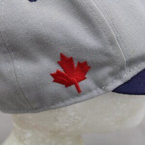 Up for sale is a Victoria Harbourcats hat by New Era. It has a grey body with a blue brim. The front of the hat has the Harbourcats logo stitched in. The right side of the hat has a red maple leaf stitched in. What a great hat do not miss out on it.