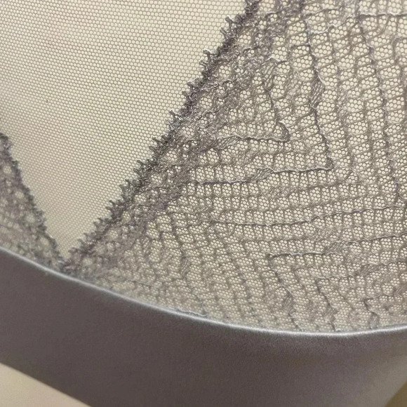 So pretty!! This light blue bra is a size 34DD. Has a gorgeous lace back. Clasps at the front for ease. Has adjustable straps! In amazing condition- no rips or stains.