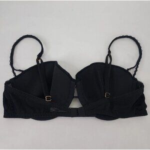 Victoria Secret Bra 36C Very Sexy Lined Demi Sequins Satin Stripe Black Padded