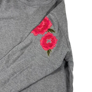 Victoria Secret Grey Pink Flower Embroidered Sleeve Sweater Size XS
