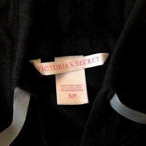 Thin black hoodie with zipper and grey drawstrings. ANgel wings design on one of the sleeves at the wrist.