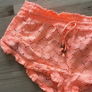 Victoria Secret - Stylish neon orange lace shorts with a drawstring detail. Perfect for beach/pool.
